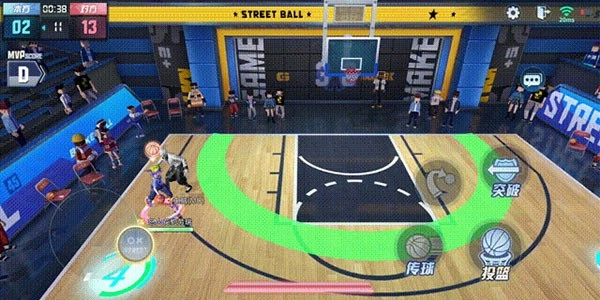 融入篮球规则的战术博弈:游戏不止于基础的得分与防守,“逆风翻盘”等机制的加入,意味着比分落后一方可能获得临时增益,这使得比赛在最后一刻都充满悬念,鼓励永不放弃的竞技精神,极大地增强了比赛的戏剧性和策略性。