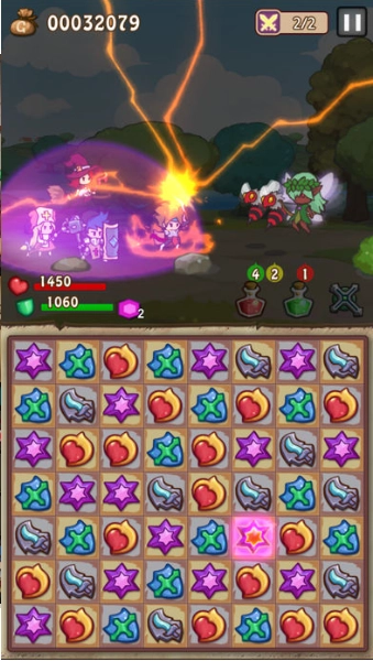 把消除类游戏的核心玩法和回合制角色扮演游戏的机制相融合,四种基础图案各自关联着不同的战斗操作指令。当玩家完成特殊形状的消除组合,比如L形或T形的匹配时,就能解锁威力更强的技能;而一旦达成连续五个相同图案的消除,更能释放出终结性的超强必杀招式。