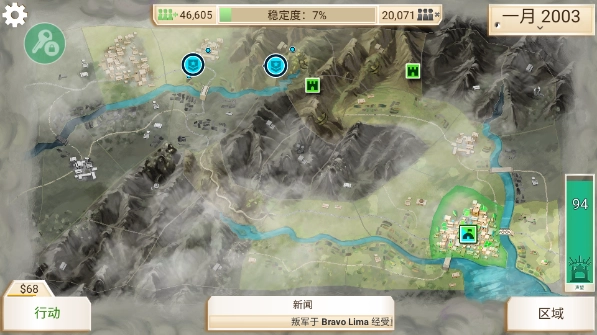 首要任务是把叛军压制在特定区域内,同时集中力量建设其他地区,直到稳定度达到最高水平。这时候要优先提升警察系统,也就是那个盾牌样式的图标。