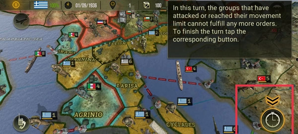 把占领区的敌人赶出去,点击右下角的箭头按钮来调动部队并发动进攻。