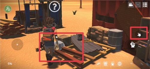 接着在地图里执行任务去搜寻物品,当靠近物品时,点击右侧的手指图标就能查找各类材料了。