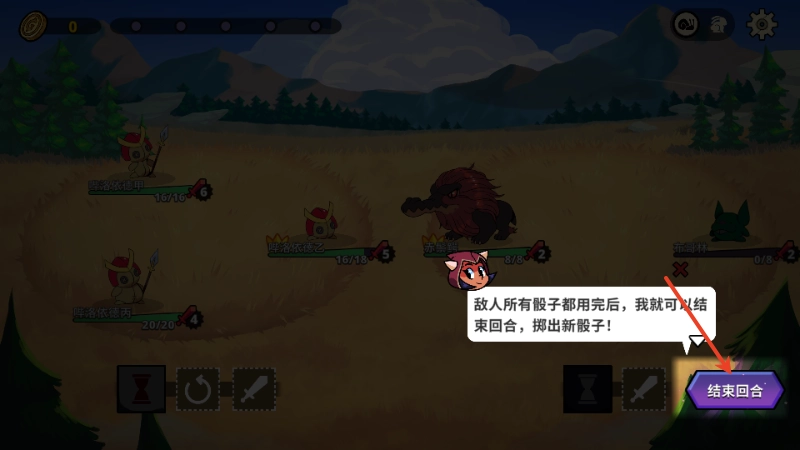 6、当敌人的骰子全部用完时,回合便会结束,此时可以掷出全新的骰子。