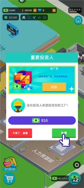 4、当你的工厂运营一段时间后,还会有各类投资人向你进行投资;