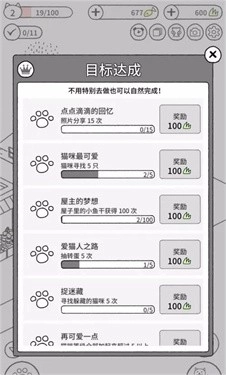 4、玩家能够在任务目标清单里查看可以完成的任务,完成这些任务后就能得到猫草奖励。