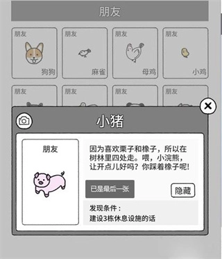 8、小猪召唤条件:当你拥有三栋休息类建筑时,小猪就会被召唤出来。