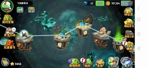 3、完成世界关卡的通关挑战可获得部分植物,若能攻克困难关卡还能获取植物装扮,其中包含原始向日葵装扮、原始豌豆射手这类强力的装扮与植物。通过积攒星星,还可以解锁能量豆槽、植物卡槽等实用道具的扩充权限。