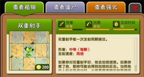 在其他大多数情况下双向射手的作用比较有限,要是没有冰属性武器,用它来对付淘金僵尸(就是那个拿着炸药的)还勉强可以,但在其他关卡使用时需要谨慎一些。