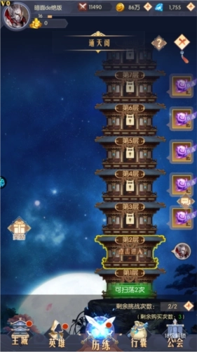 1、通天阁:爬塔玩法,真元石的主要获取途径之一,这里产出的真元石数量比其他渠道都要多。