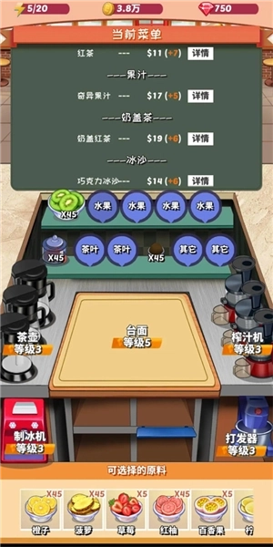 这里还有一些实用的小技巧分享给你:每天结束营业后去玩游戏,等技术练好了基本能做到每次都赢,这可是前期攒金币的好途径;每次采购食材时,尽量凑够50金币以上再结账,这样就能触发讨价还价功能——要知道前期盈利微薄,升级机器的费用又高得吓人,哪怕是一个金币也得省着花;雇佣员工后,记得时常关注他们的心情状态,要是心情太差会直接影响技能的正常发挥;卖当下流行的食物往往最赚钱;另外,如果不小心做错了饮料,你可以按住杯子往下拉,就能把里面的东西倒掉重新做了。