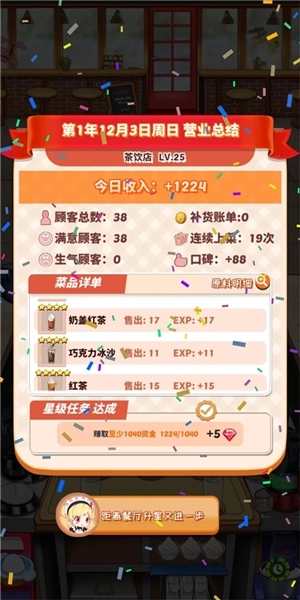 这里取消了三星评价机制,也不会再因为任务未完成而导致卡关;取而代之的是,关卡变成了对日常营业场景的模拟——是选择提前结束营业,还是继续加班工作,完全由你自己决定!