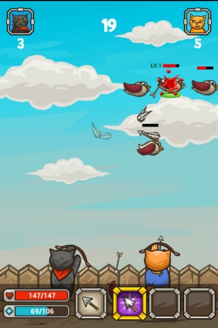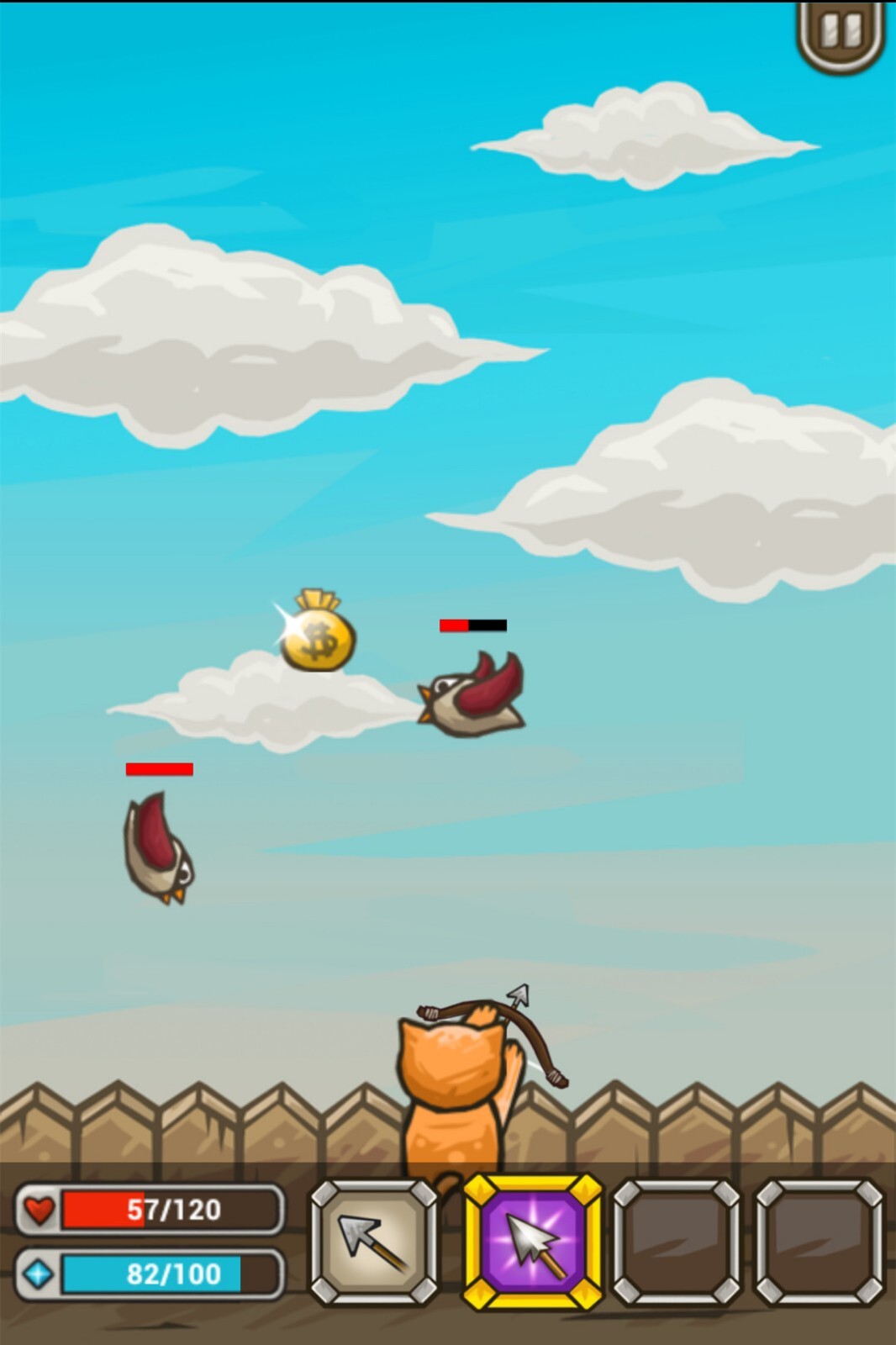 猫射手是一款充满趣味性的角色扮演作品。在游戏里,你将体验精彩刺激的战斗,玩家的目标是赢得胜利并守护自己的家园。具体操作是灵活操控小猫,射击空中的鸟儿。游戏玩法看似简单,实则颇具难度,需不断点击技能,再点击飞过的鸟儿才能完成射击。