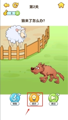 2、于第2关界面处,点击位于中间位置的“提示”按钮,以此获取解决问题的线索。