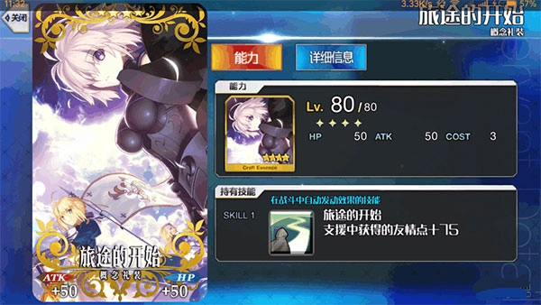 这件礼装是今日登录即可领取的赠送礼装,佩戴后能提升友情点的获取量,还能带来ATK50与HP50的属性加成。它属于收藏类礼装,有着一定的纪念意义。