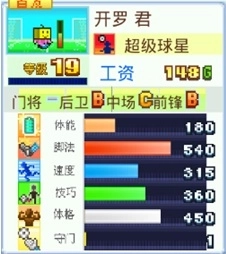 在《冠军足球物语2》中每个球员有六项能力属性,分别是体能、脚法、速度、技巧、体格和守门。