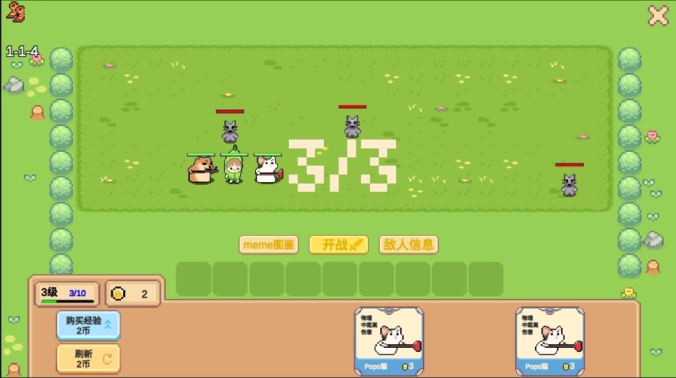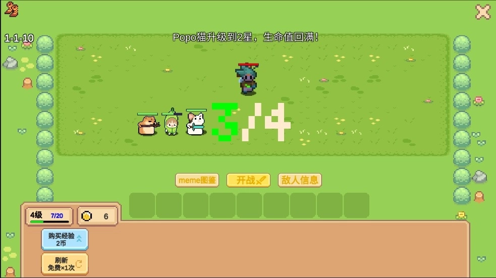 一款像素风格的猫meme自走棋游戏,快来组建专属于你的猫meme大军吧!在这里你可以获取强力圣遗物,凭借智慧排兵布阵,全力闯关挑战!