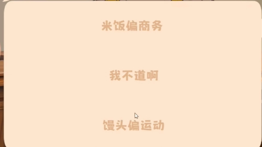 当晕碳值积累到满值时,肠胃就会跳出来对大脑发起直击灵魂的拷问,玩家得从三个选项里挑选一个来回应,回答完毕后,就会触发QTE小游戏环节