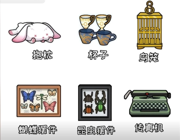 抱枕、杯子、鸟笼、蝴蝶摆件、昆虫摆件、传真机