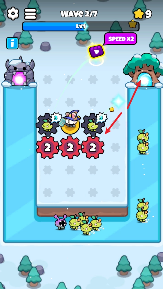 设置完成后就能开启战斗,你的角色会自动攻击敌人,同时还会转动齿轮。
