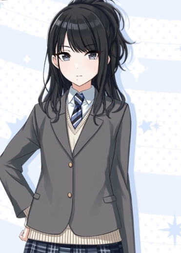 垂在身后的黑发十分惹眼,是位自带酷感的美少女。她有着不达自己满意绝不停止的自律性格,目前是高中一年级学生。