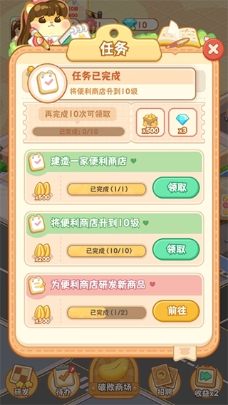7、游戏中设有任务清单,完成即可获得奖励,帮助快速扩大商城。