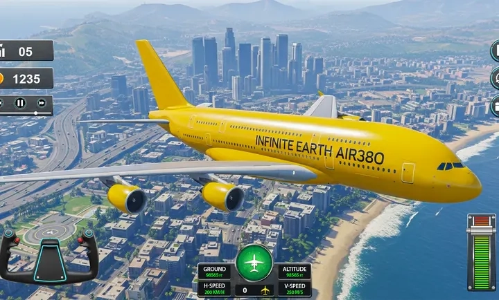2、我们为您准备了丰富多彩的飞行场景,您可以尽情探索。从壮丽的冰雪岛屿、繁茂的绿色大地,到炽热的沙漠与辽阔的城市,每一处都以细腻逼真的画面生动展现。每条航线都蕴含着独特的挑战,让您的游戏体验始终充满新奇与乐趣。
