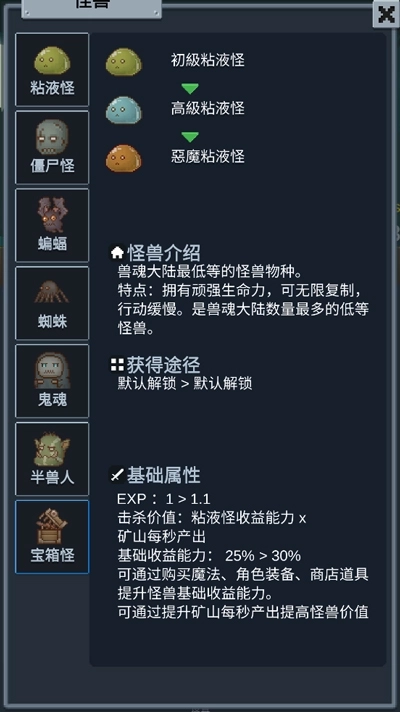 《听说这里有怪兽》是一款像素风格,放置挂机游戏。
