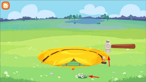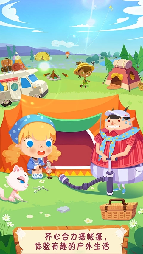 1、启动糖糖郊游记游戏后,玩家只需点击帐篷按钮,就能进入搭帐篷的游戏页面;