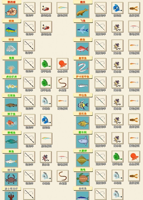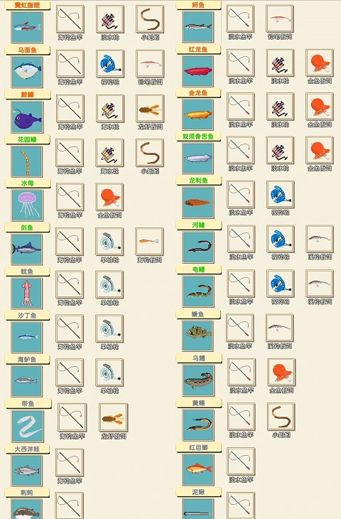 钓鱼全图鉴(共72种)