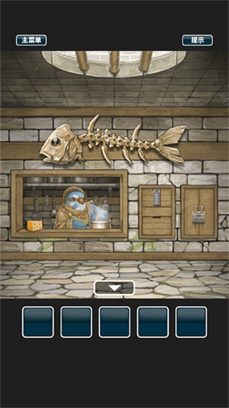 3、能看到最右侧有个柜子,依据最上方鱼骨的上下方位,打开柜子后可获取一根钓鱼竿。