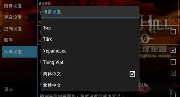 3、向下滑动页面,找到“简体中文”选项,之后进入游戏就能看到中文显示了。