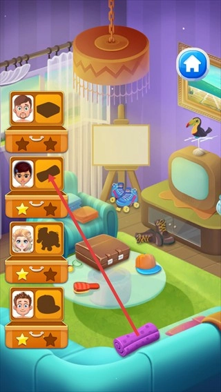 1、观察带有角色头像的箱子,找到【毛巾】样式的标识,把场景里对应的物品放进匹配的箱子中,完成物品打包来推进流程。