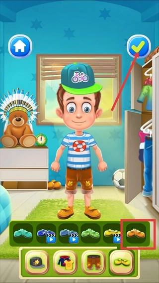 4、完成换装后,点击界面右上角的【对勾】按钮,确认当前的换装搭配,这样就能完成该环节的操作,从而推进流程。