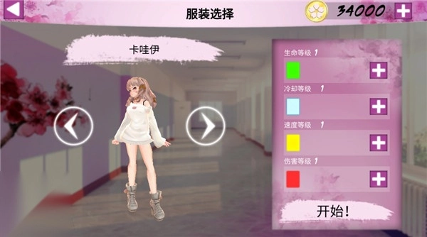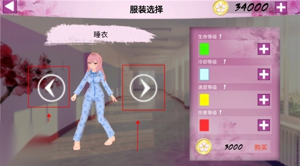 2、点击角色旁边的按钮能够切换服装,尚未解锁的服装需要使用金币进行购买。