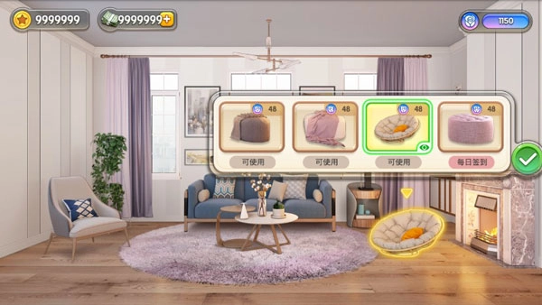 在这里,玩家只需点击想要更换的家具并挑选款式,就能完成家具的更换操作,并且每次更换都会提升温馨度。