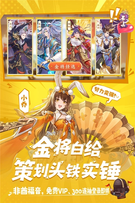 还在担心资源不足?这就为主公献上丰厚福利——首月即可畅享300抽,轻松获取金将,一路横扫全图!VIP经验可免费领取,即使零氪也能晋升VIP,解锁专属特权!静听赤壁战前的琴音,于东风之中共商兵法,驰骋沙场无所畏惧,与豪情万丈的壮士一同畅饮美酒!