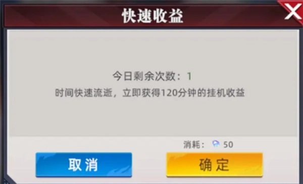 为了让玩家更高效地获取挂机物资,游戏特别推出了快速收益功能。玩家通过使用该功能,能够立刻获得120分钟的挂机物资收益。当玩家急需资源来提升角色,却又没有足够时间等待长时间挂机时,这无疑是一个非常合适的选择。