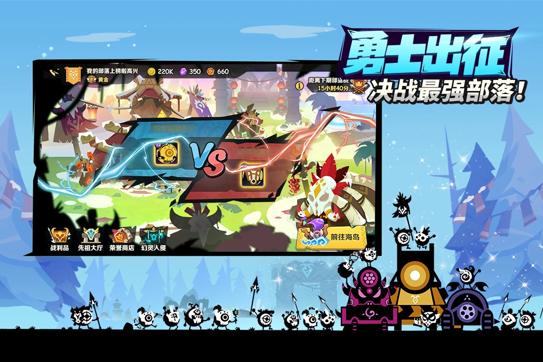 游戏采用真人实时PVP玩法,对战双方将共同面对相同的敌人,最终存活到最后的一方即为胜利。在进入战斗前,玩家需要提前组建自己的战斗编队,初始阶段可携带5名部落勇士参与对抗。而在战斗过程中,玩家能够通过合成相同类型的勇士,以此来激活勇士所具备的独特技能。