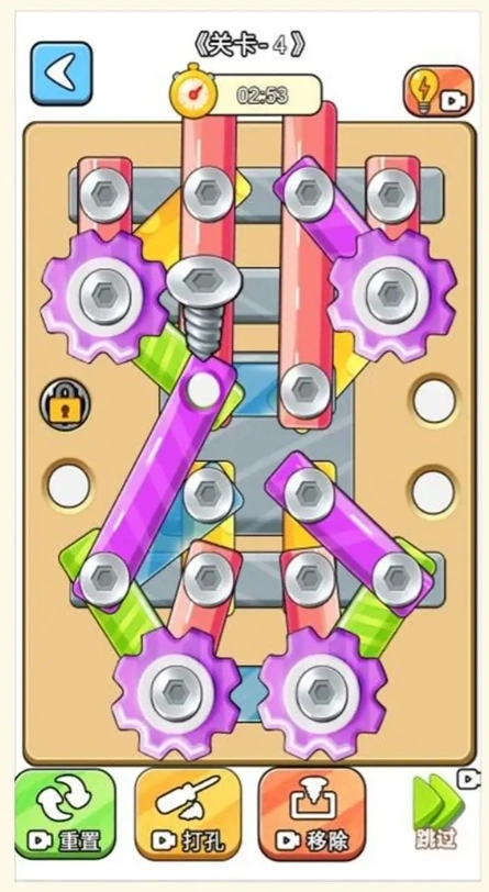 4、玩家需要在每个关卡中做出战略选择。根据场景和任务要求,选择最佳的工具和策略来驱动螺丝。