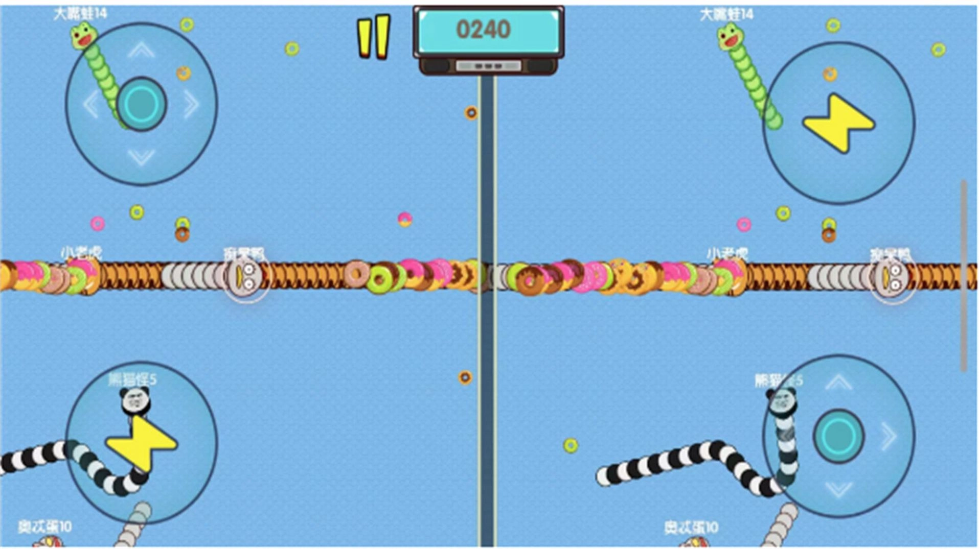双人乱斗贪吃蛇是一款蕴含多样贪吃策略的竞技游戏,两位玩家在同一地图中操控各自的贪吃蛇展开精彩对决。玩家们通过灵活走位、抢夺食物来提升自身长度,同时借助蛇身布局干扰对手,共同制定相关战术,最终顺利取得胜利。游戏玩法趣味十足,内容充实多样,玩家可一较高下,节奏紧张刺激,画面色彩鲜艳明快,搭配动感音乐,营造出既紧张又欢乐的竞技氛围。