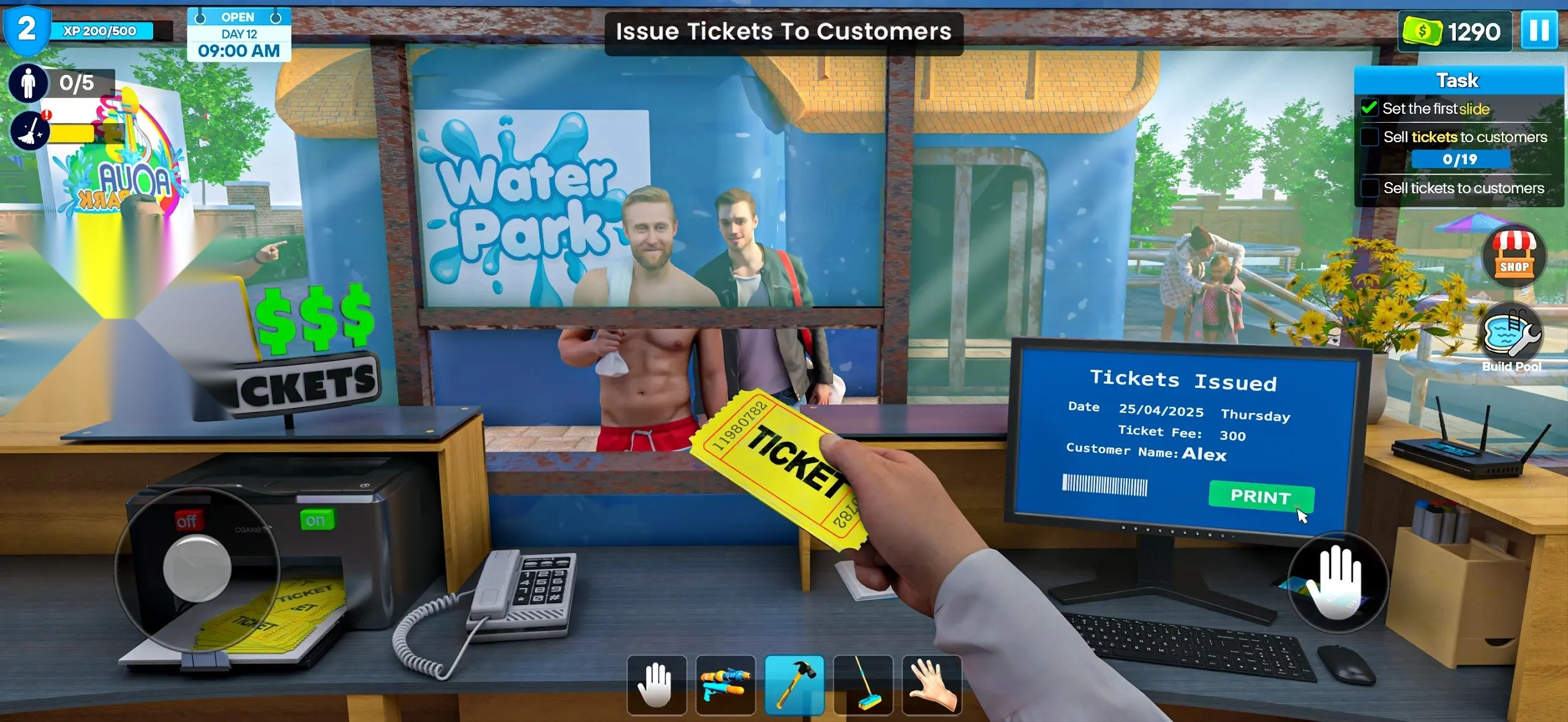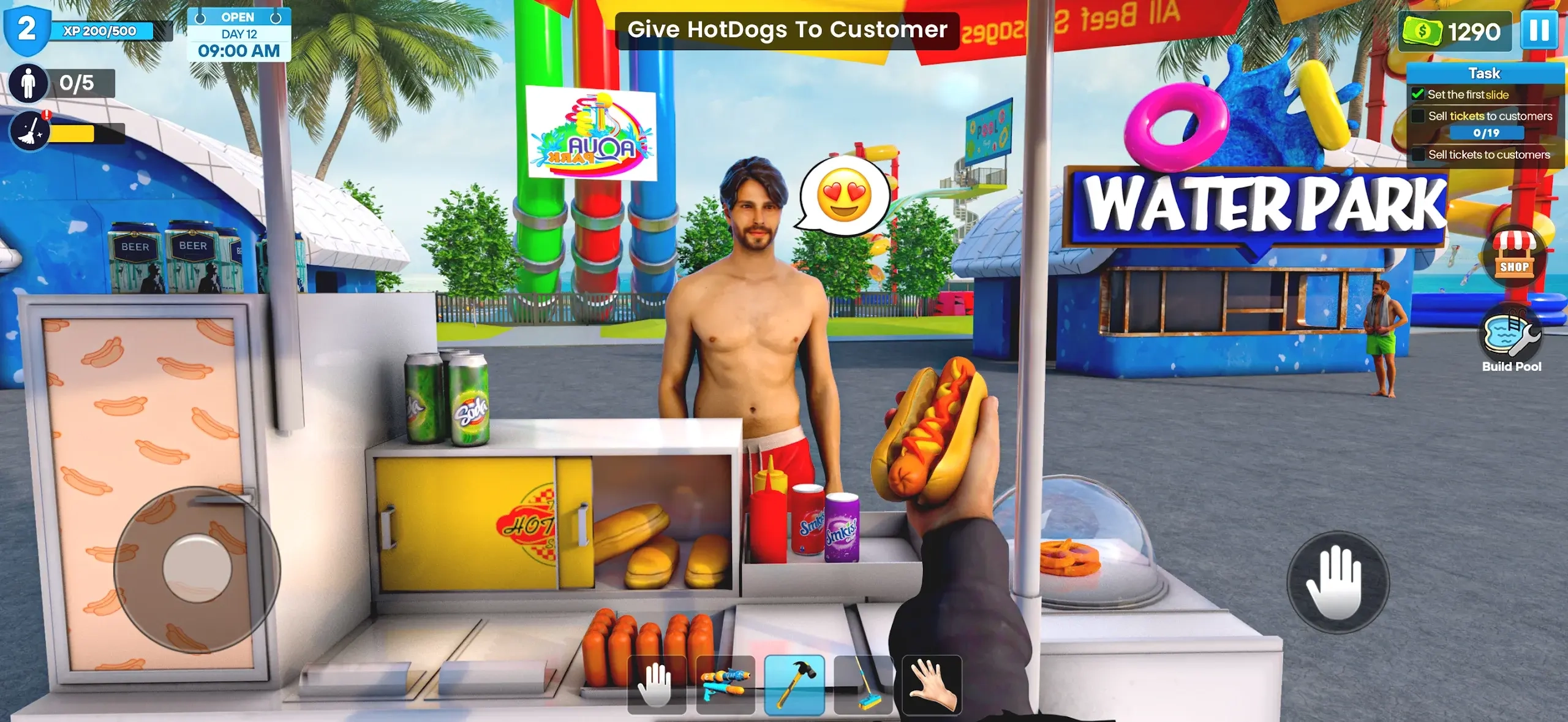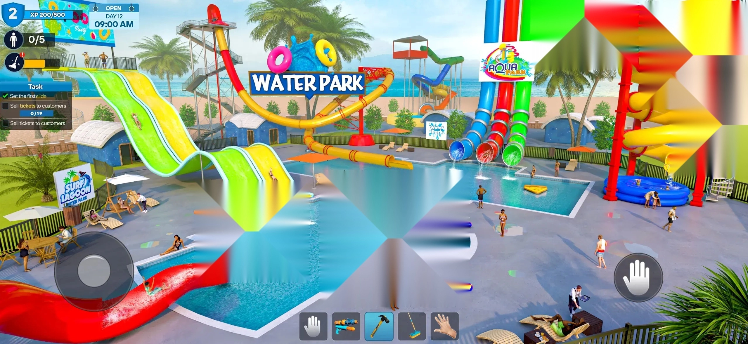 3、解锁新区域来拓展水上乐园的规模,同时聘请员工负责处理日常运营中的各类事务。
