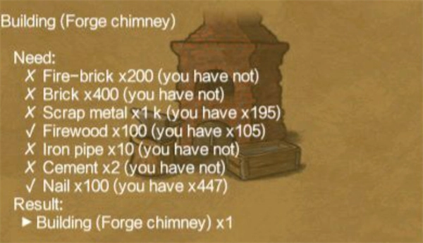 再去把荞麦煮一下,赶紧收集15根木柴,还得搭个棚子;另外做饼需要两袋面粉、一瓶纯水,还得有火,吃了之后能减少35点饥饿值。
