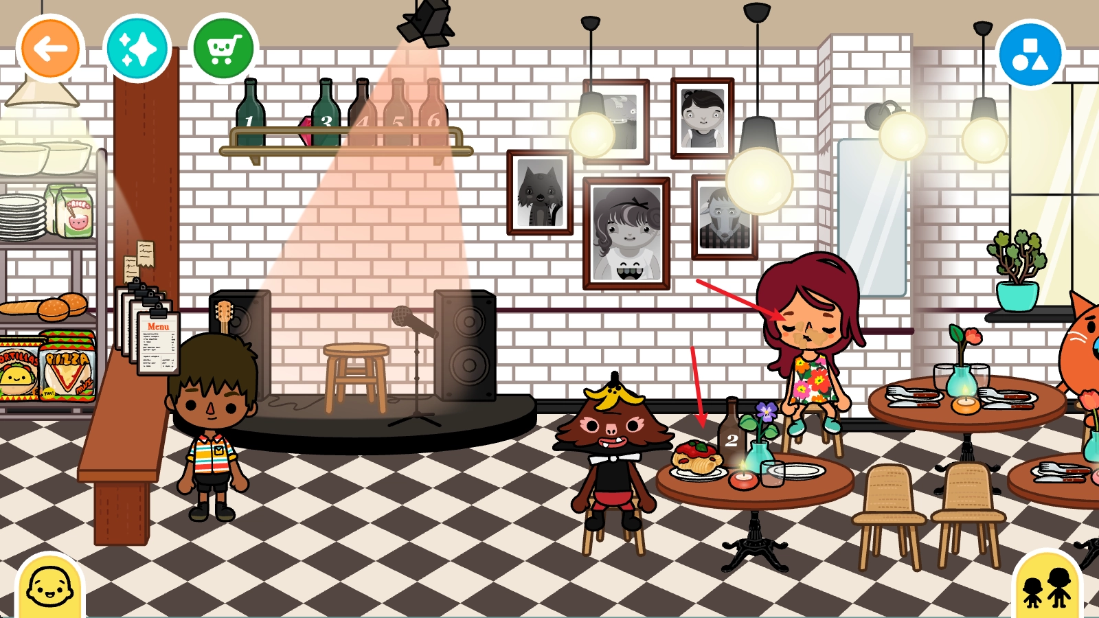 场景里还存在着各类能够互动的元素,像在餐厅中品尝可口的食物。