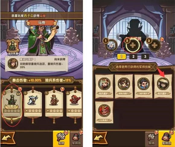 军师系统是开局就能解锁的系统,入口位于兵营的左上角。拥有军师后,可进入该界面进行编辑并安排上阵。获取军师后,需在军师界面手动激活。激活军师时,会获得暴击伤害以及对应兵种的伤害加成,这部分加成即便军师不上阵也会生效。因此,即便得到的不是最心仪的军师,也能带来显著提升。成功激活后,就可以前往编队界面将获得的军师装备上了。