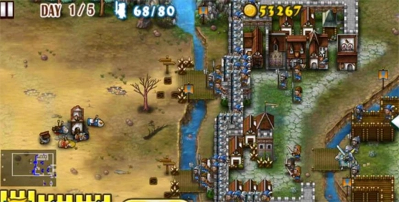 城墙海流战术,从字面意思就能明白,就是先建造大量的城墙,然后在城墙后方部署大批弓箭手、铁锤兵,再配上一座教堂,以及弓箭作坊和盾牌作坊。这个战术适用于所有关卡,只要你有足够的资金,把城墙和各类兵种都布置得满满当当就行。