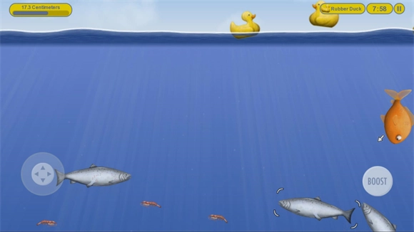 避开其他捕食者以免自身沦为猎物,持续吞食更多小鱼以成长为顶尖的捕食者。
