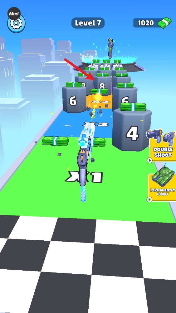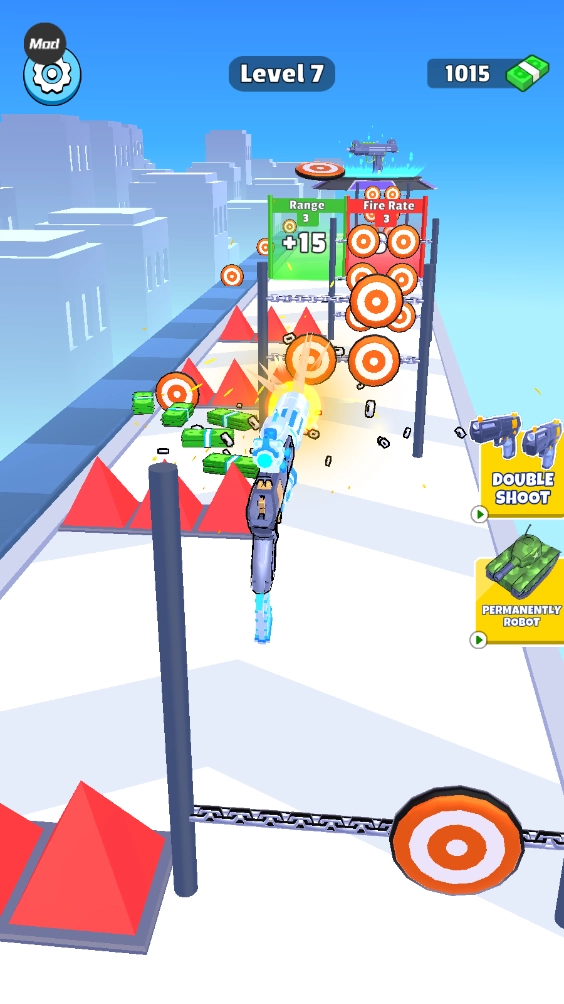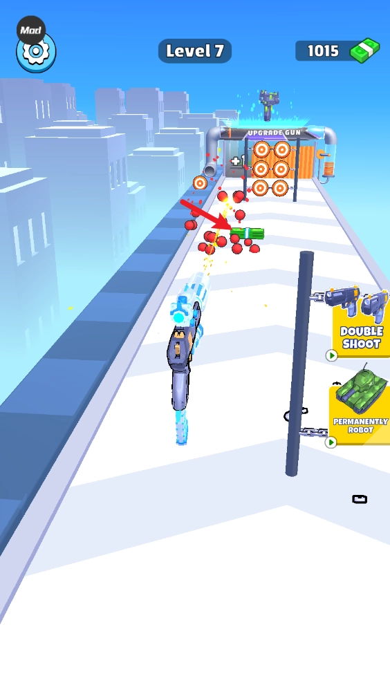 《枪械闯关大师》是一款融合了趣味跑酷与射击闯关元素的休闲游戏。在游戏里,你将操控一把枪械作为跑酷主角,通过精准射击清除前方的各类障碍,确保自己能顺利向前推进。过程中,你会遇到多种强化选项,通过选择这些强化来不断提升火力,为自己开辟出更长远的道路,挑战更远的距离!此外,你还能通过持续挑战收集货币,用这些货币来升级枪械性能,解锁更多强力的枪械!