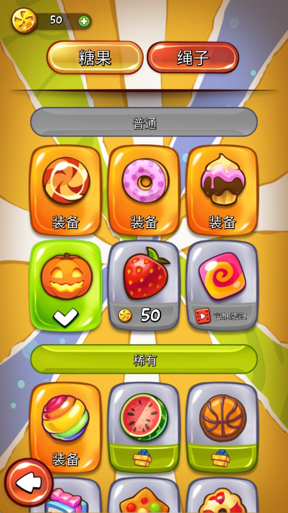 游戏里配备了琳琅满目的糖果与绳子皮肤,玩家能借助闯关逐个解锁这些内容,使得闯关的过程变得更具趣味性。