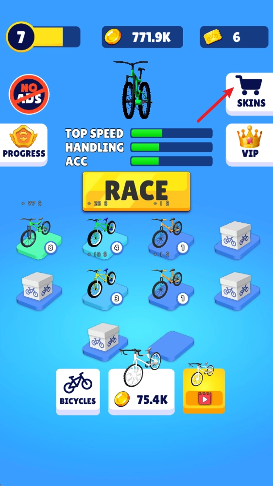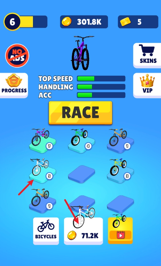 丰富类型的自行车可以通过合成去一一解锁,还能通过升级的方式提升性能,让你在比赛中有更好的发挥。