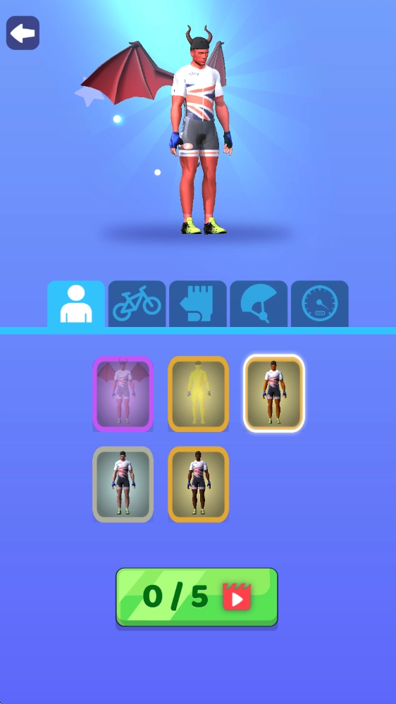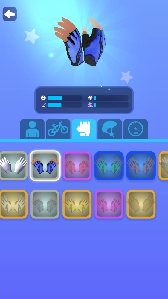 游戏里还提供了各式各样的皮肤供玩家挑选,玩家可以选择不同的角色,再搭配上心仪的头盔和手套,从而拥有一套完整的骑行装备。