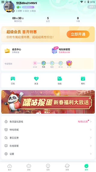 检查应用权限:确认咪咕快游已获取所需的网络权限,未被设置成禁止联网状态。